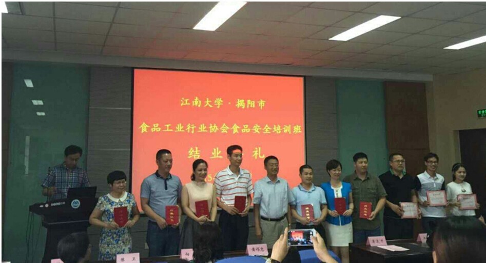 6月21日 -28日,,,,,,,,在揭阳市食物药品监视治理局的指导和协助下,,,,,,,,揭阳市食物工业行业协会组织了上海、江苏无锡江南大学为期7天的学习交流培训班。。。。。。。加入培训班的职员有:市食物工业行业协会成员、市蓝城区管委会、市商务局、市科技局和市食物药品羁系局约60人。。。。。。。我司手艺研发中心赵淑昂、罗丹虹代表公司加入本次培训运动。。。。。。。