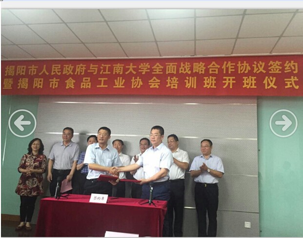 本次学习交流培训获得市委市政府的高度重视,,,,,,,,在开班仪式上,,,,,,,,揭阳市副市长曾瑞如致辞并作开班发动讲话,,,,,,,,江南大学食物学院陈卫院长与揭阳市蓝城区管委会、揭阳市工业转移工业园主任蔡淡群签约周全战略相助协媾和建设国家级食物研究中心协议。。。。。。。揭阳市食物药品监视治理局局长黄伟忠对揭阳市食物工业情形作了周全的先容。。。。。。。